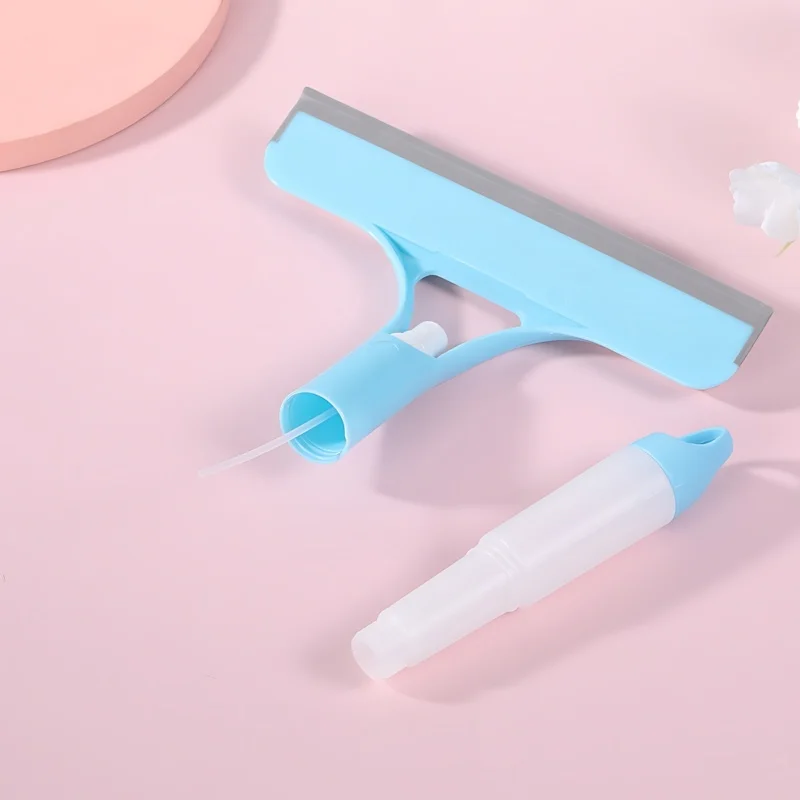Cleaning glass surfaces after showers with built-in spray.
